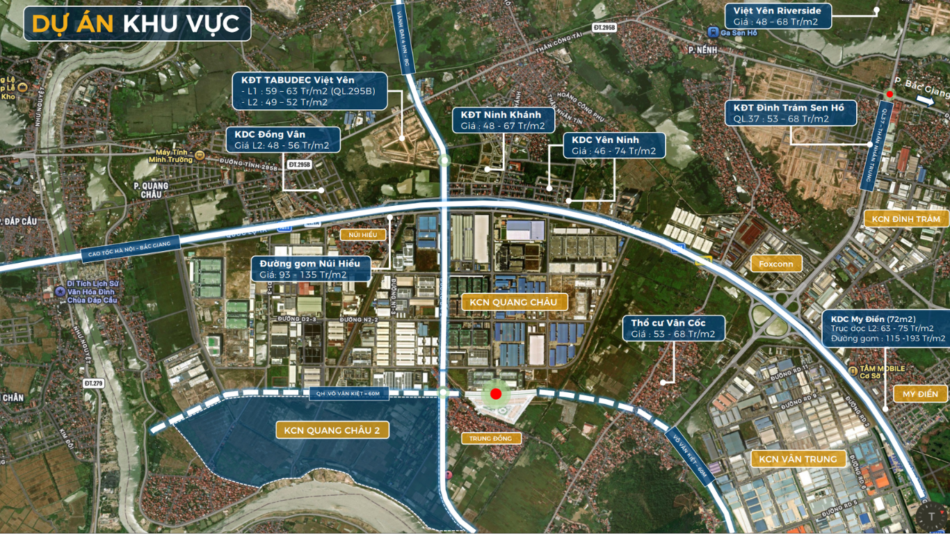 Khu Dân Cư Trung Đồng (Cenexus Park Trung Đồng) là dự án đô thị mới hiện đại nằm tại thôn Trung Đồng, xã Vân Trung, huyện Việt Yên – vị trí vàng ngay cạnh chuỗi khu công nghiệp lớn nhất Bắc Giang và giáp ranh Bắc Ninh. Với quy mô 6,3ha – 200 lô, dự án được định hướng trở thành khu đô thị công nghiệp – dịch vụ đồng bộ, đáp ứng nhu cầu an cư, kinh doanh, cho thuê và đầu tư dài hạn.