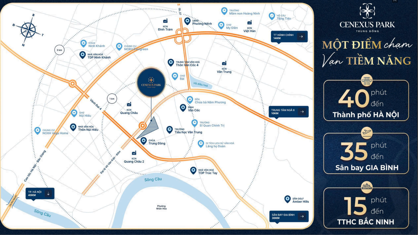 Khu Dân Cư Trung Đồng – Cenexus Park Trung Đồng không chỉ là nơi an cư lý tưởng mà còn là cơ hội đầu tư “hái tiền” hiếm có tại khu vực Việt Yên – Vân Trung – Quang Châu. Với vị trí chiến lược, pháp lý minh bạch và tiềm năng sinh lời rõ rệt, dự án trở thành lựa chọn hàng đầu cho khách hàng tìm kiếm: